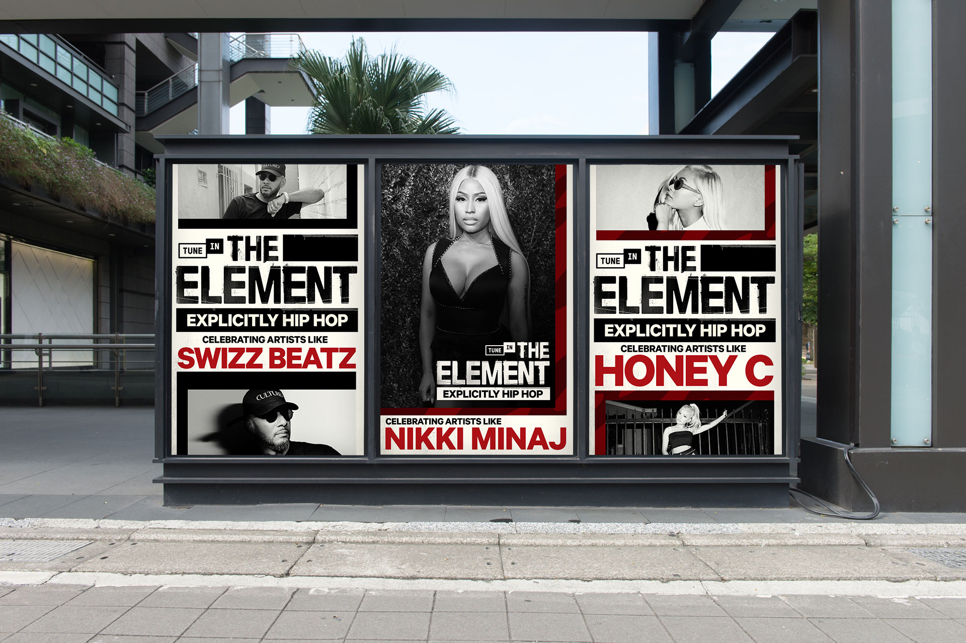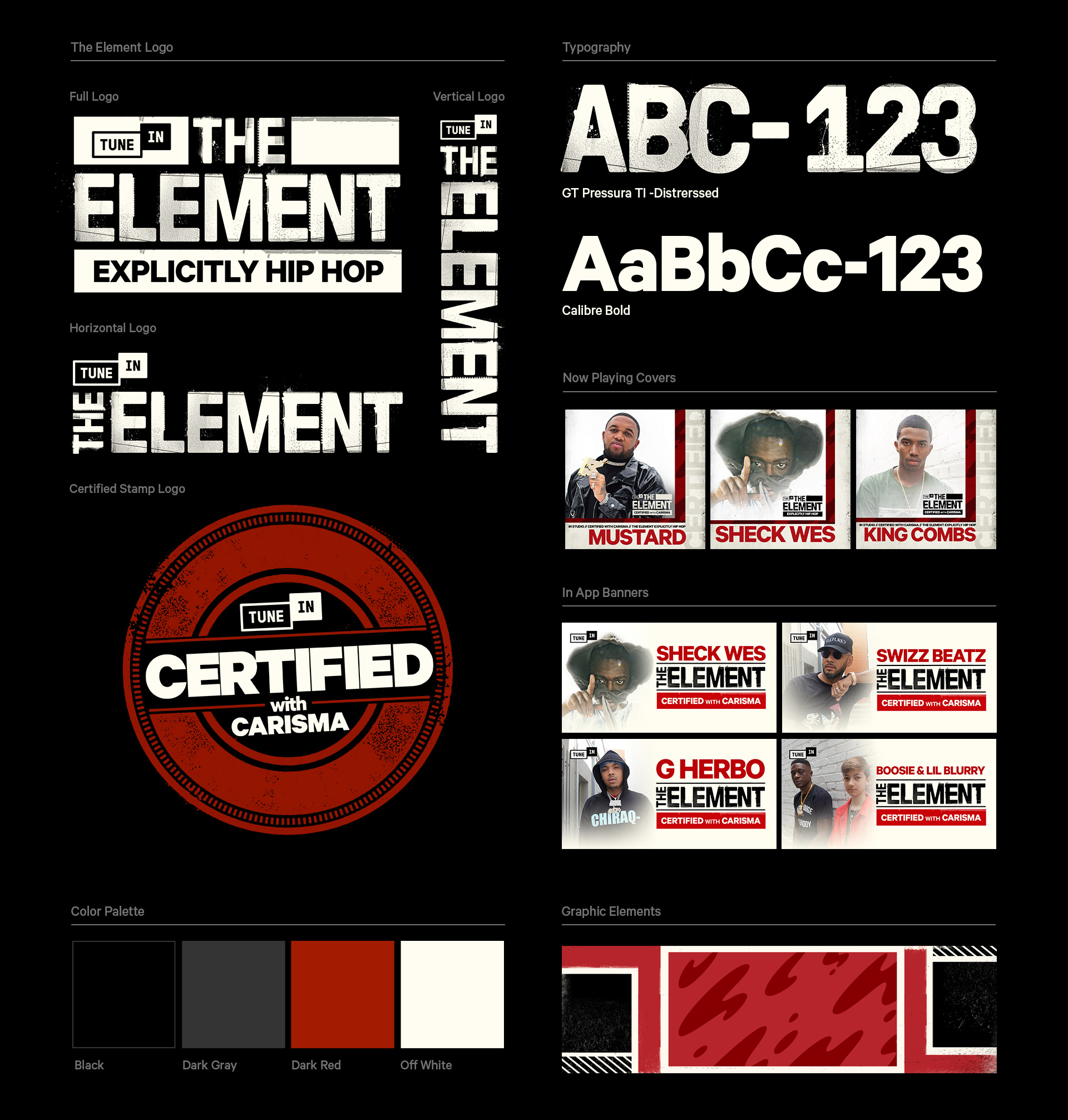 TuneIn has 60+ owned and operated stations. Four of which are dedicated to the hip hop genre. We decided to turn our top performing hip hop station HIP HOP BEAT into a global brand. I provided creative direction efforts for all visual communications ranging from digital media, print and motion graphics. Artists came by our studios for interviews and custom liners to support The Element brand. For content capture, I also lead all art direction in photography and videography which for all promo & marketing materials. See more photography here.