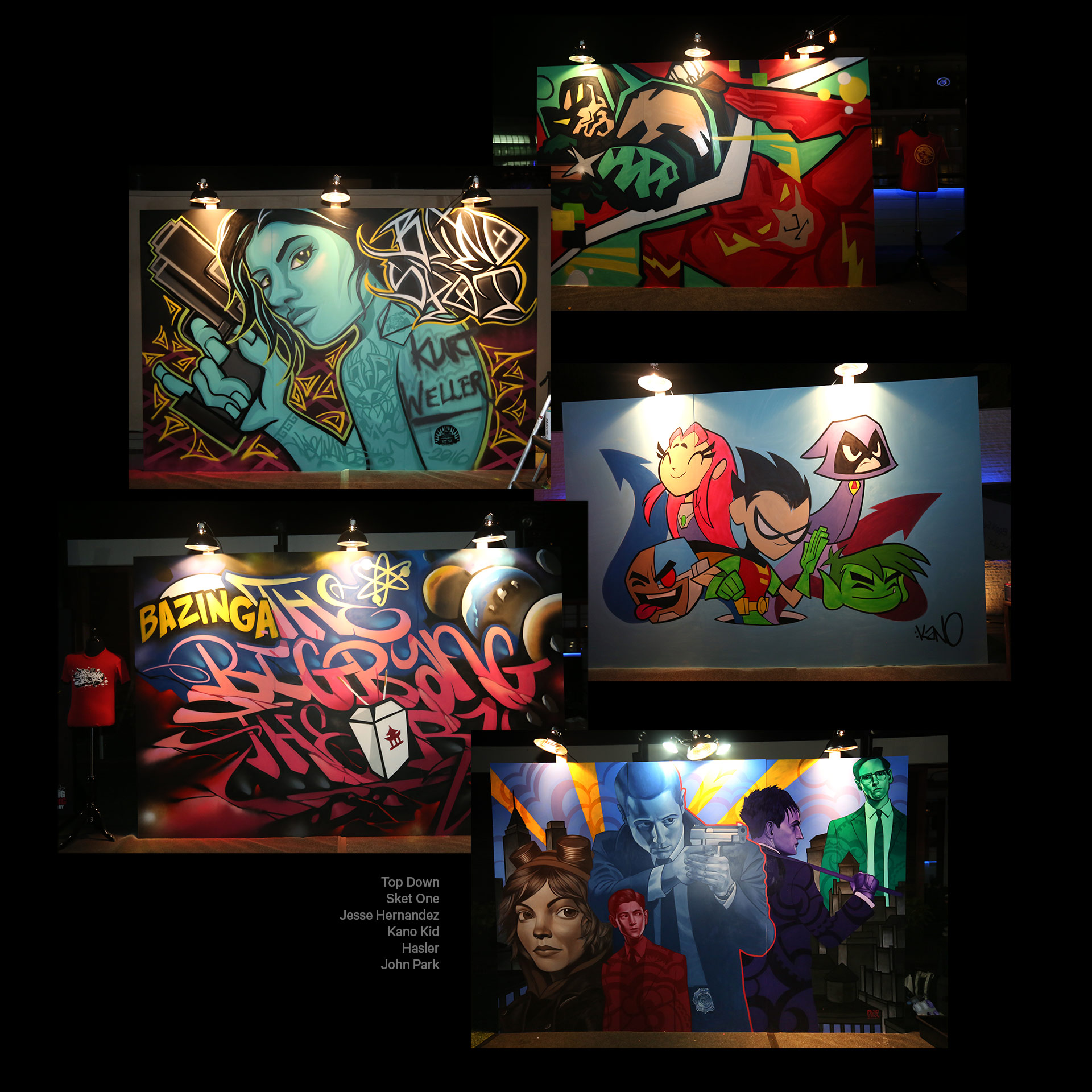 The work seen here was a combination of an event activation for Warner Bros. at Comic-Con where I provided the art direction for the entire graphics package for the event. I also curated a live art show for an exclusive Comic-Con party given for all the WB talent at Comic-Con. I called some friends including Jesse Hernandez, Kano, Sket One, Ladie One, John Park, Hasler, Lord and a few others to collaborate on some designs and paint live murals that promoted WBTV shows: Supergirl, Blindspot, The Big Bang Theory, Teen Titans and The Flash. All photos and videography were shot and edited by me. ✌️